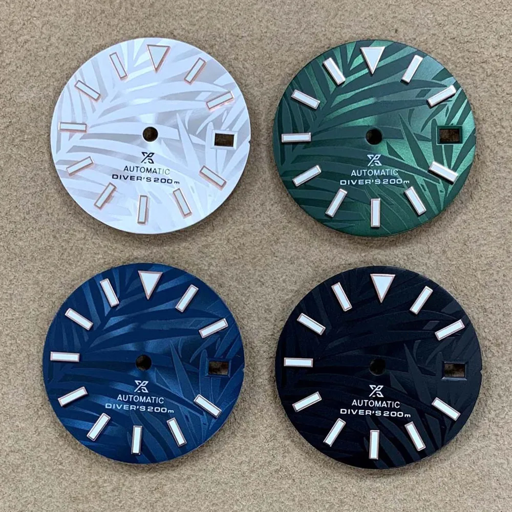 NH35 다이얼 28.5mm 녹색 발광 시계 다이얼, NH35 NH36 기계식 무브먼트 리프 패턴 시계 페이스 액세서리 부품, 신제품