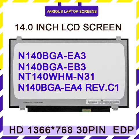N140BGA-EA3 노트북용 N140BGA-EB3 N140BGA-EA4 Rev.C1 NT140WHM-N31 매트릭스, 14.0 인치 LED 디스플레이 LCD 화면, 1366×768 HD 30 핀 EDP