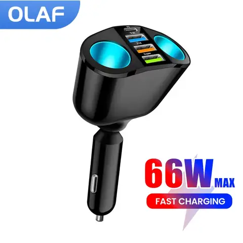 Olaf 차량용 C타입 휴대폰 충전기, 아이폰, 샤오미, 화웨이, 삼성 휴대폰용, 담배 라이터, 4 포트, 66W USB